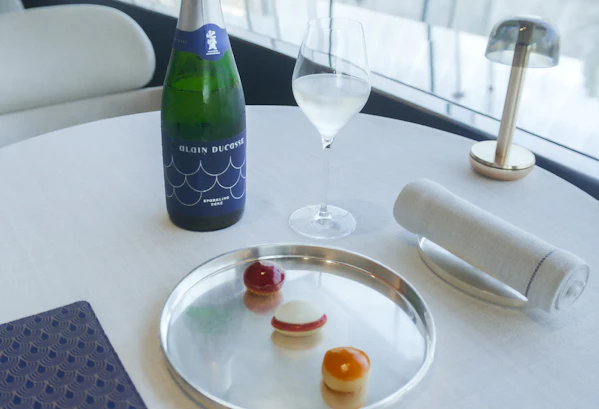 この日のディナーでは、アラン・デュカスの料理哲学に基づいて食材そのものを尊重しつつも、まず酒を選び、それを踏まえて料理を考案するという、通常とは逆となる手順を取ったそうです。